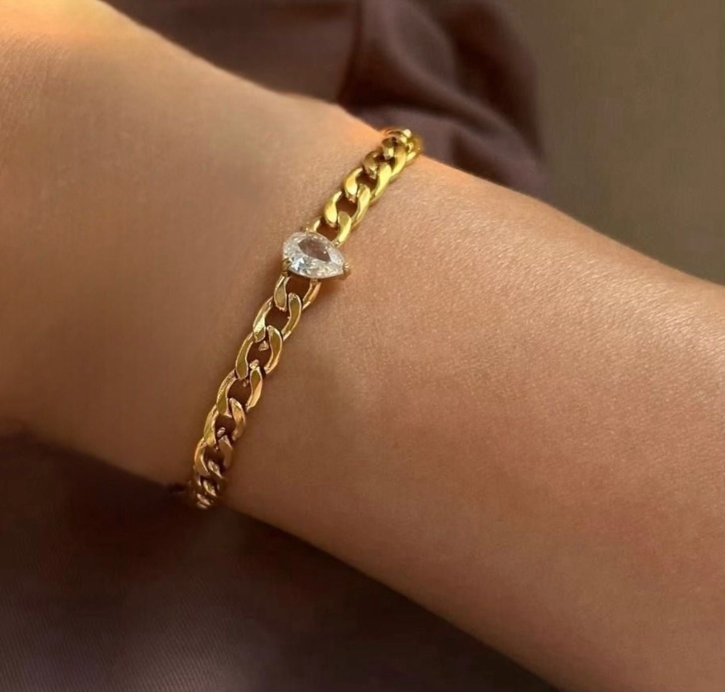Sophisticated yet striking, the Seraphina Solitaire Bracelet features a sleek gold Cuban link chain embellished with a single sparkling stone at the center. Designed to be your go-to statement stacker, this dainty piece adds a touch of modern glamour to every wrist.